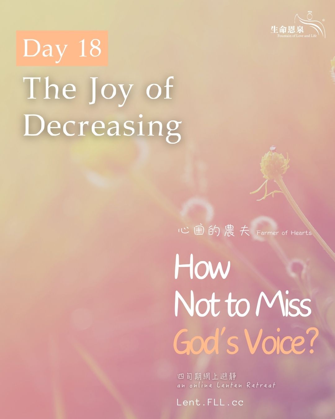 Thank you for participating in this 40-day Lenten spiritual journey. We hope you have been inspired and have benefitted from it! For the spiritual benefit of all of you, Fountain of Love and Life devotes a lot of time and effort in producing various spiritual projects every year, and all our ministries are sustained by the generous donations of our supporters. We hope you will support us with prayers and donations. Please make an online donation using the button at the top of the website Lent.FLL.cc. Thank you very much for your support. God bless!