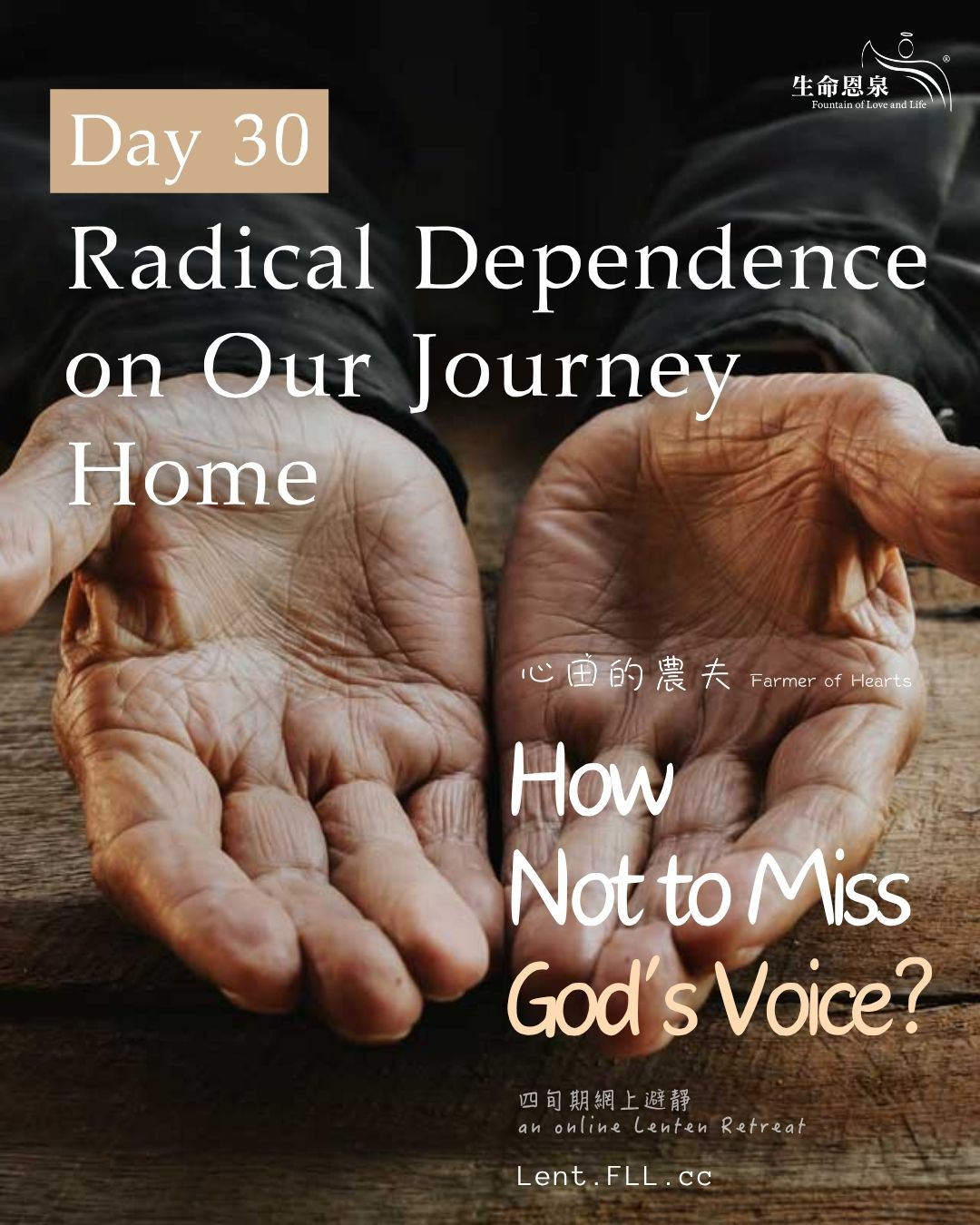Thank you for participating in this 40-day Lenten spiritual journey. We hope you have been inspired and have benefitted from it! For the spiritual benefit of all of you, Fountain of Love and Life devotes a lot of time and effort in producing various spiritual projects every year, and all our ministries are sustained by the generous donations of our supporters. We hope you will support us with prayers and donations. Please make an online donation using the button at the top of the website Lent.FLL.cc. Thank you very much for your support. God bless!