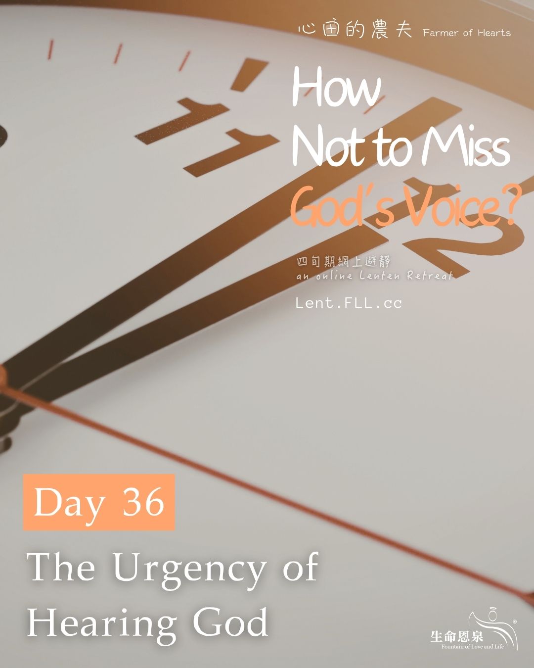 Thank you for participating in this 40-day Lenten spiritual journey. We hope you have been inspired and have benefitted from it! For the spiritual benefit of all of you, Fountain of Love and Life devotes a lot of time and effort in producing various spiritual projects every year, and all our ministries are sustained by the generous donations of our supporters. We hope you will support us with prayers and donations. Please make an online donation using the button at the top of the website Lent.FLL.cc. Thank you very much for your support. God bless!