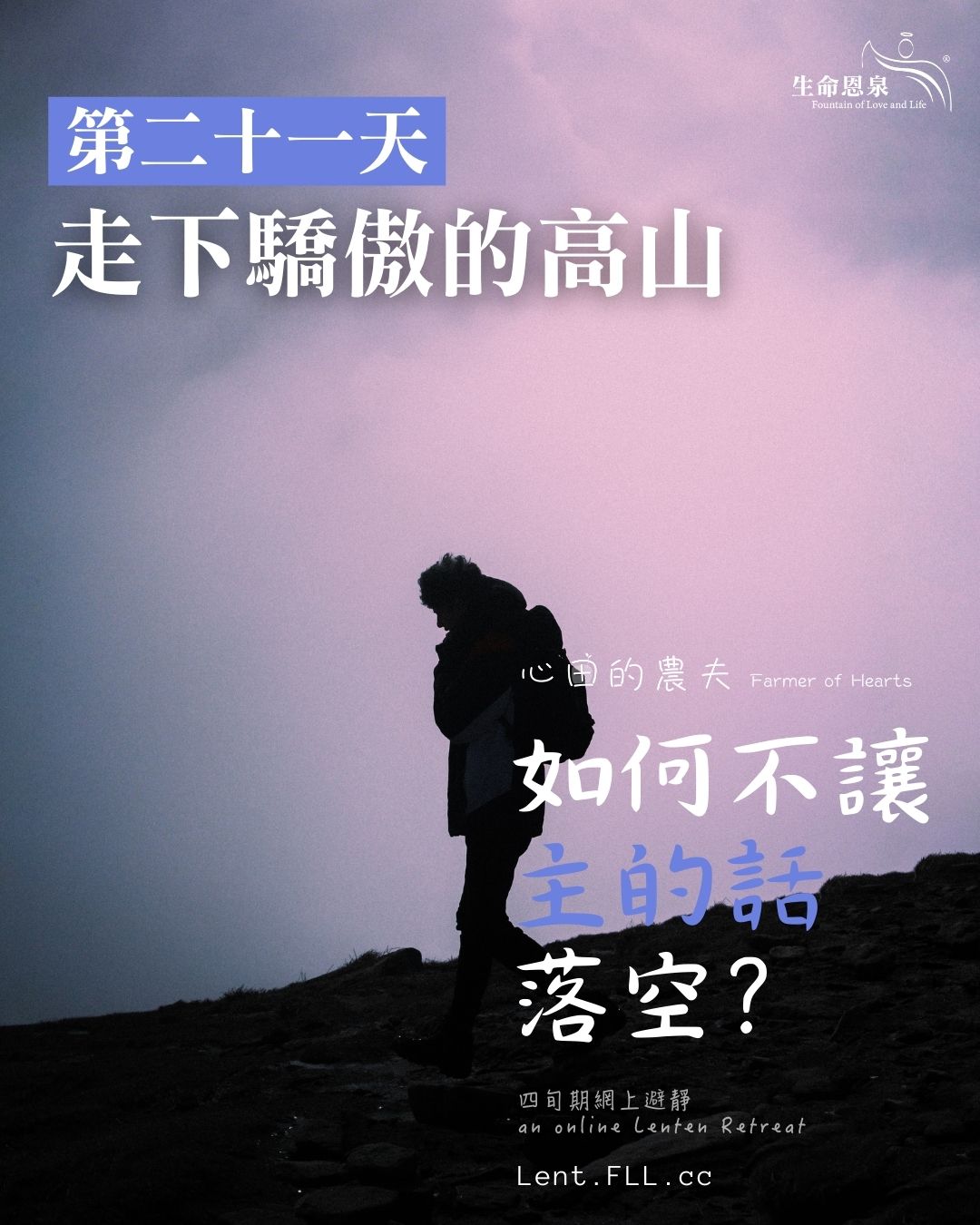 現在,請深呼吸。 今天,你是否仍然緊緊抓著自己的「屬靈履歷」?你是否還在暗自渴望別人的掌聲與肯定?耶穌正邀請你,從驕傲的高山上走下來。步入謙卑的幽谷吧。