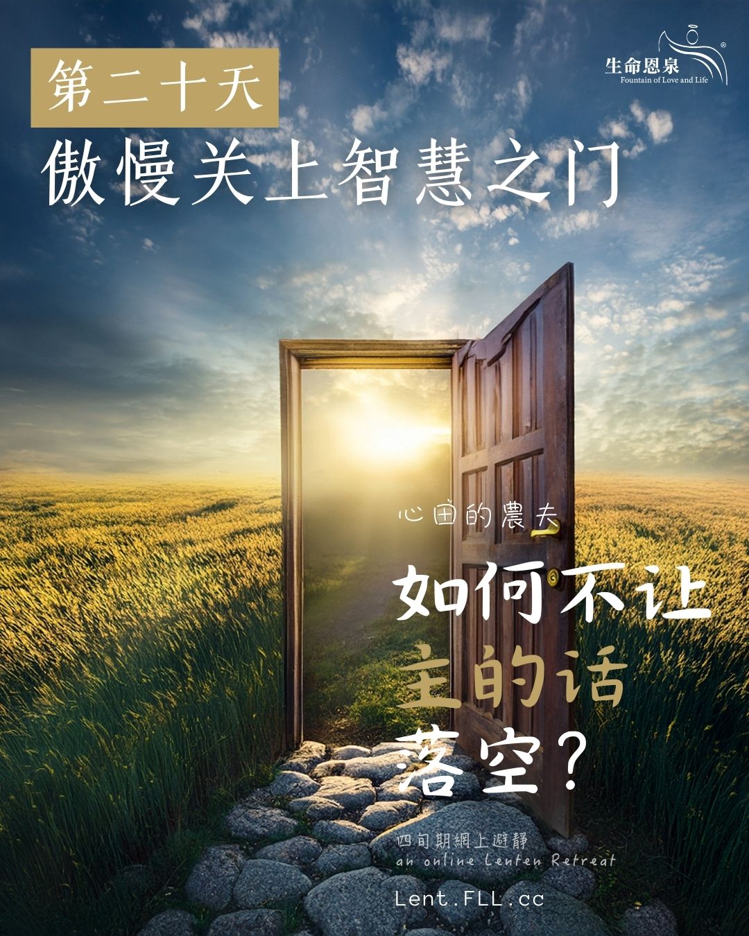 在过去几天,我们一起反思了有关悔改、痛悔的心、谦卑,以及面对骄傲的课题。今天,我们要更深入地探讨骄傲这心态。骄傲不只伤害我们的人际关系——它更会完全阻隔天主的声音。它使我们以为自己的想法比天主的想法更好。想想洗者若翰所说的话:「祂应该兴盛,我却应该衰微。」(若望福音3:30)要真正活出这句话,我们就必须把骄傲连根拔起。