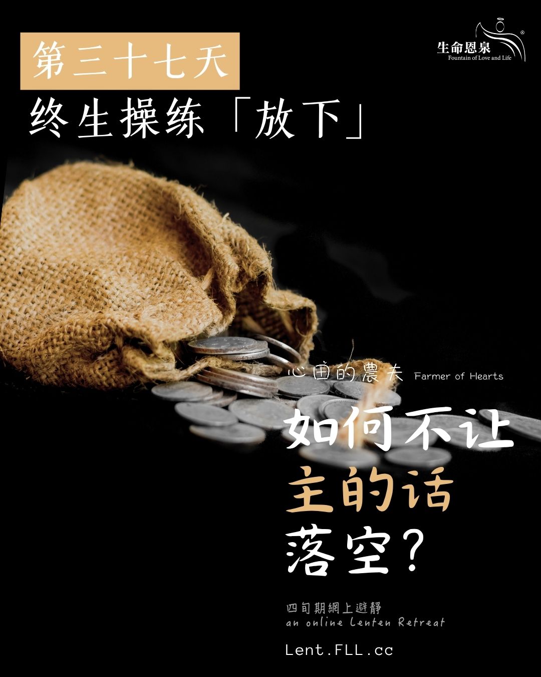 感谢您参与这个四旬期的40天灵修之旅,希望您有所启发及得着!为了各位的灵性益处,《生命恩泉》每年都投放不少时间及心血制作不同的灵修项目,而我们的所有事工都是透过支持者的慷慨捐助才能延续。我们希望您以祈祷及捐款支持我们。请用网页 Lent.FLL.cc 顶部的按钮作网上捐款。衷心感谢您的支持,祝主内平安!